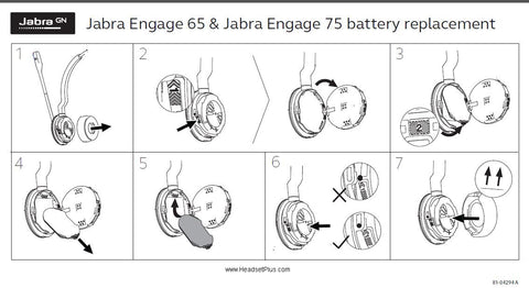 • One replacement battery pack for Jabra Engage 55, Engage 65 and 75 for Mono or Duo headsets.