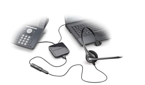 - Works with most Plantronics corded, wireless, or Bluetooth® USB headsets